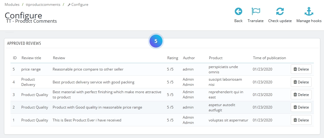 But it does not have buttons to upload or download reviews in the admin panel. To export reviews, you need to go into your website’s database.