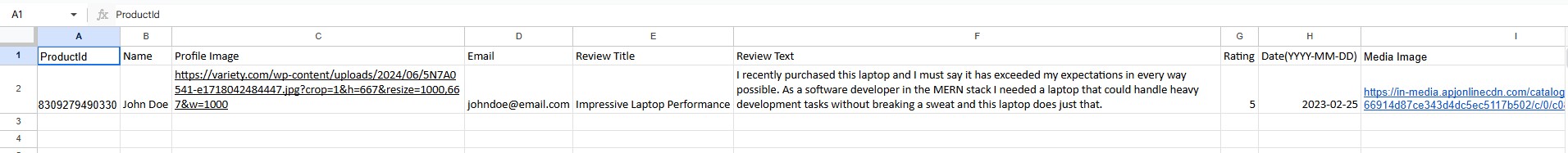 Use a CSV or Excel file saved in UTF-8 format. Make sure to include fields like Product ID, Reviewer Name, Rating, and Review Text.