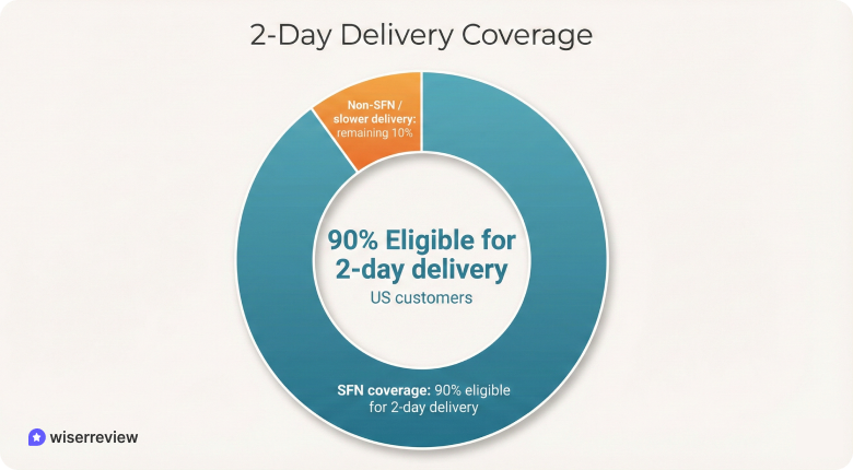 51. SFN enables 2-day delivery coverage for over 90% of US customers.