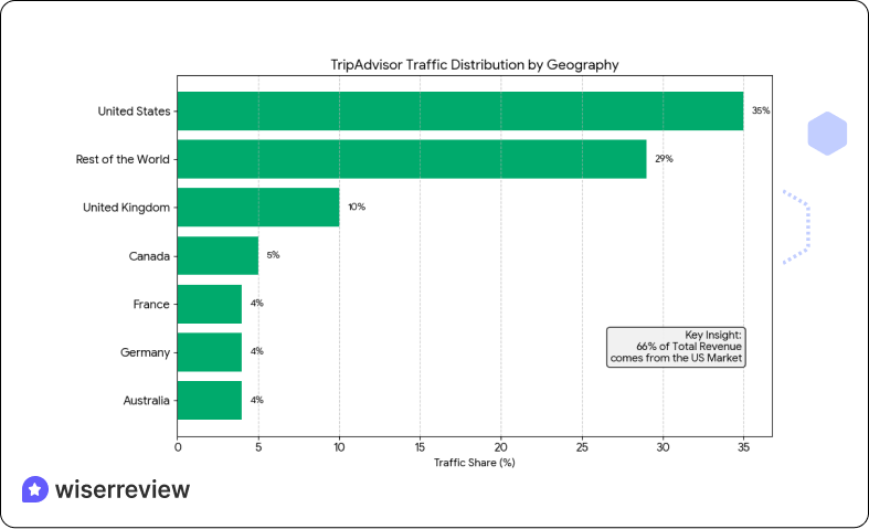 This part explains where TripAdvisor users are located and which markets matter most.
