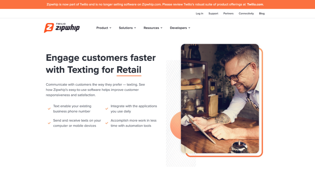 Zipwhip is a business texting tool that lets companies send and receive SMS from their existing landline or VoIP numbers.