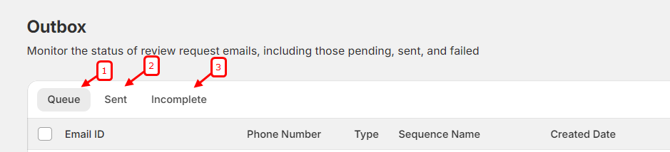 3. Incomplete Tab:- Identify failed or incomplete emails.