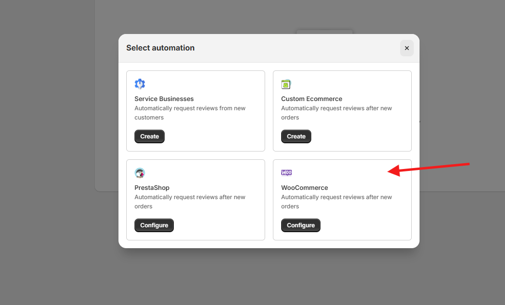 • Select WooCommerce and click Configure