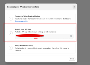 • After saving the key in your WooCommerce backend, return to WiserReview