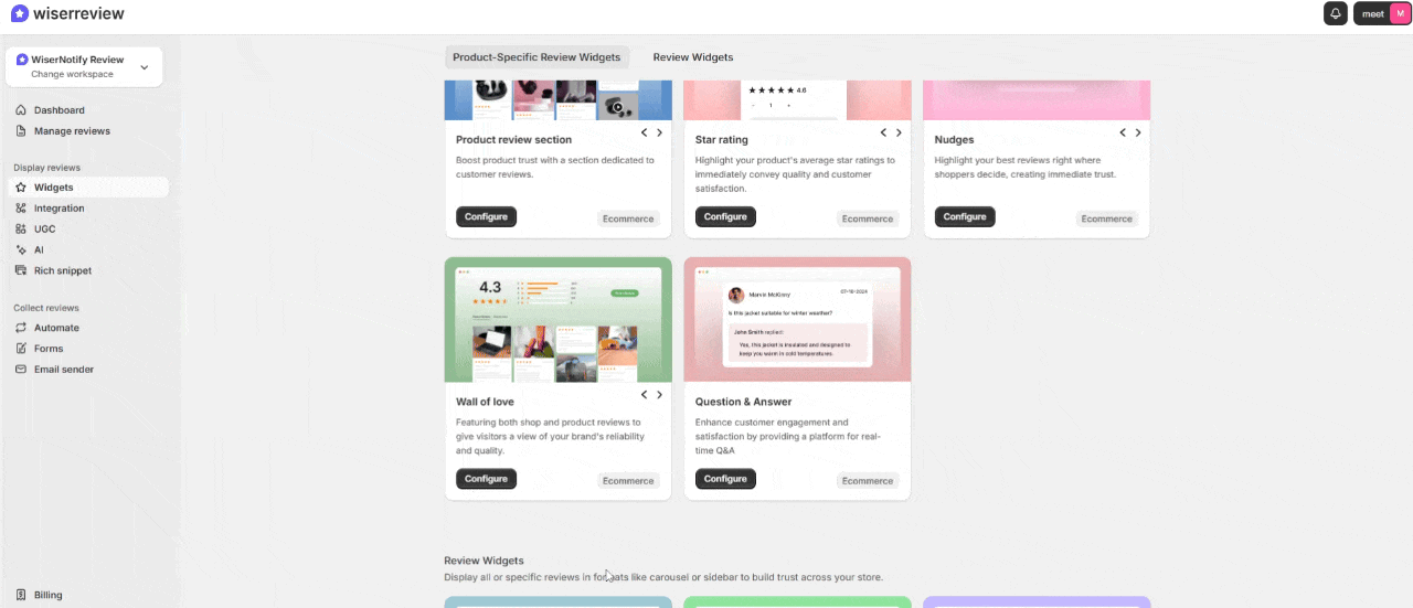 WiserReview offers multiple product-specific review widgets, like: