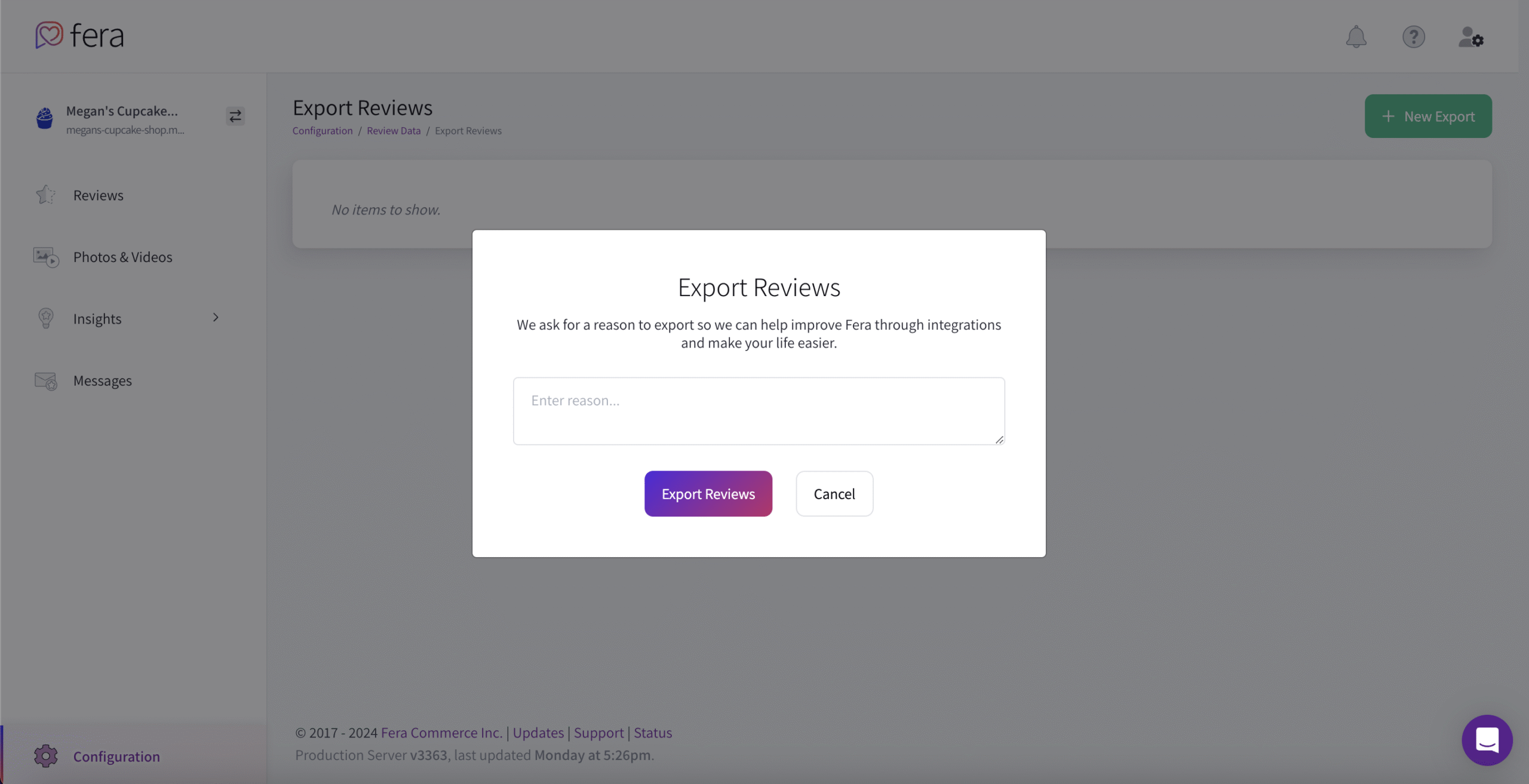 Step 1: Export Reviews from Fera