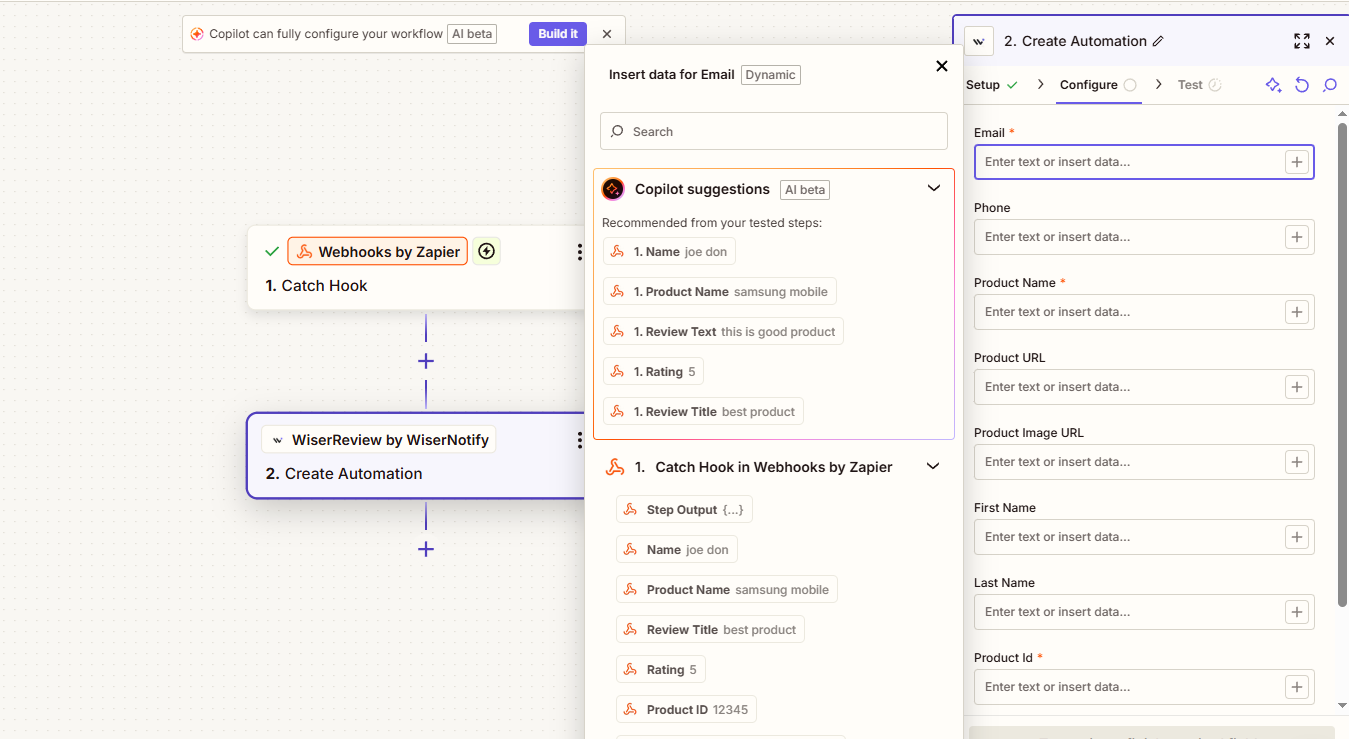 Whenever the trigger runs, WiserReview will automatically add this data to your automation queue (under “Set Review Triggers” → Zapier Integration).