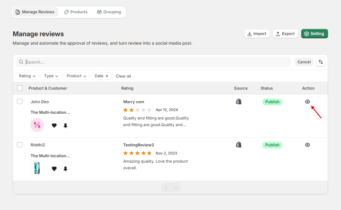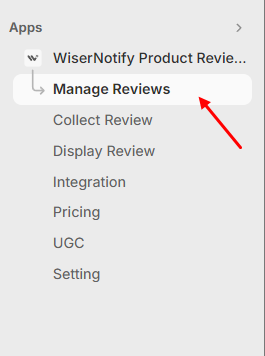 Navigate to Apps > WiserNotify Product Reviews > Manage Reviews.