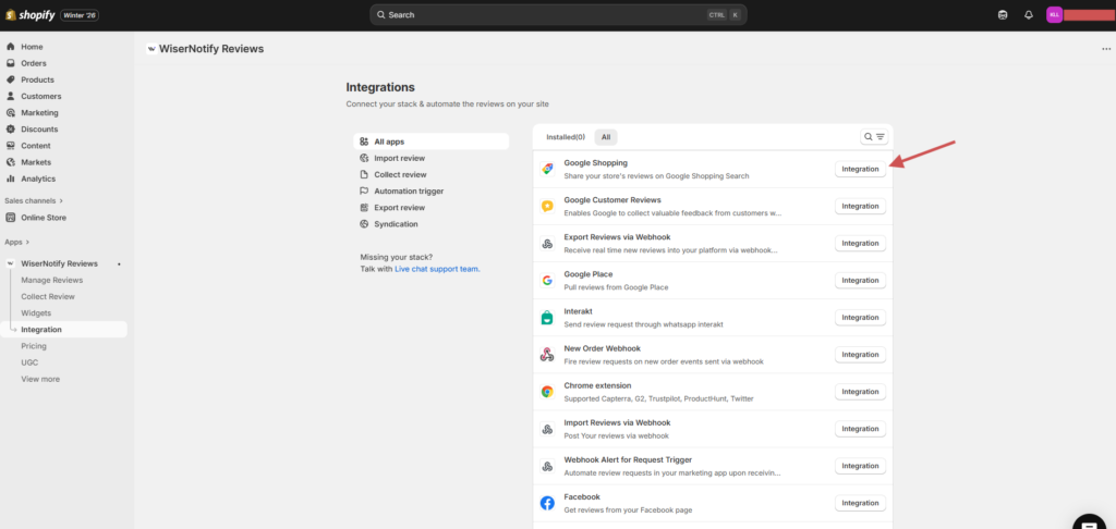 4. Once connected, WiserReview will automatically start collecting reviews from store orders.