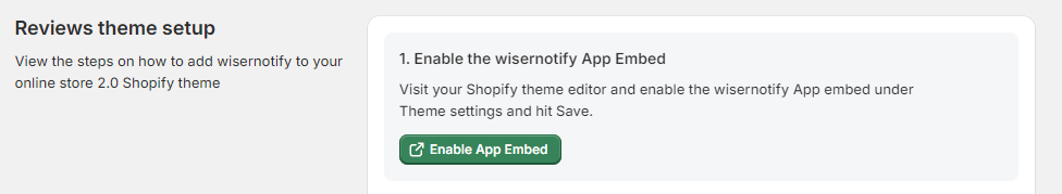 1. Enable WiserNotify App Embed :