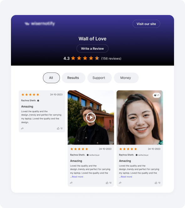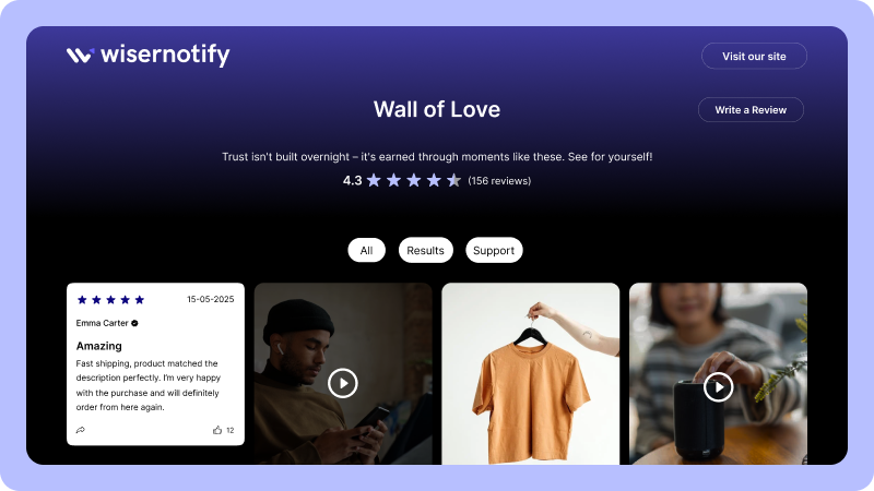 Yes. WiserReview supports text, photo, and video reviews so you can showcase real customer experiences.