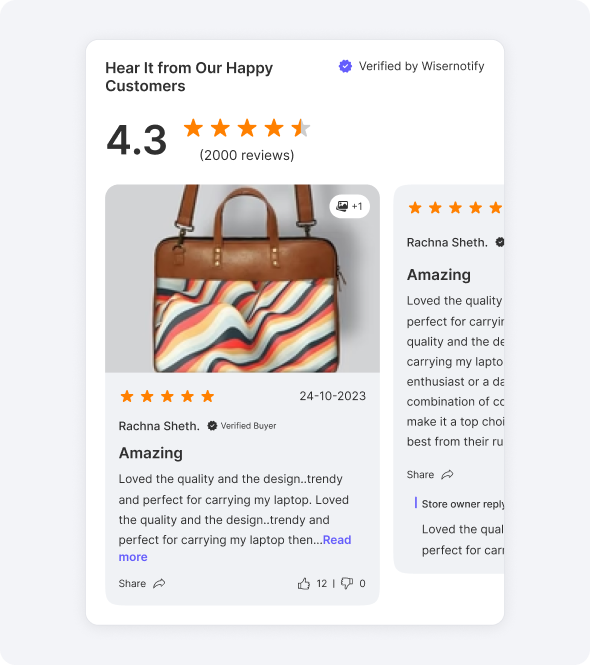 Show both shop and product reviews to highlight your brand’s quality and trust.