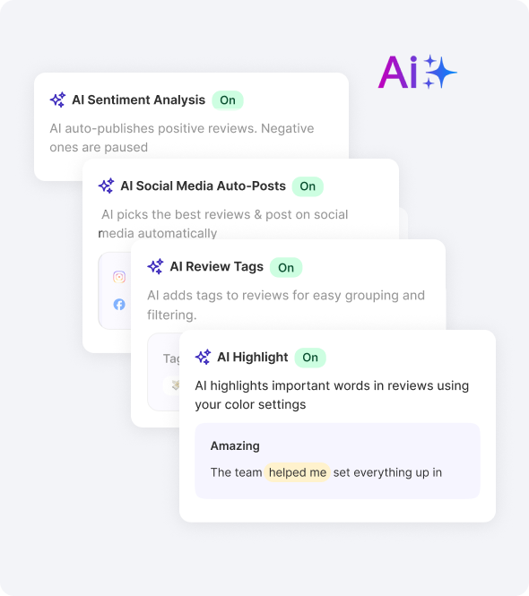 Easily collect and manage reviews from one dashboard, with smart automation and AI support. Display real customer feedback where people are ready to decide.