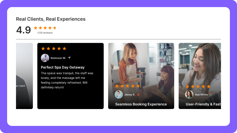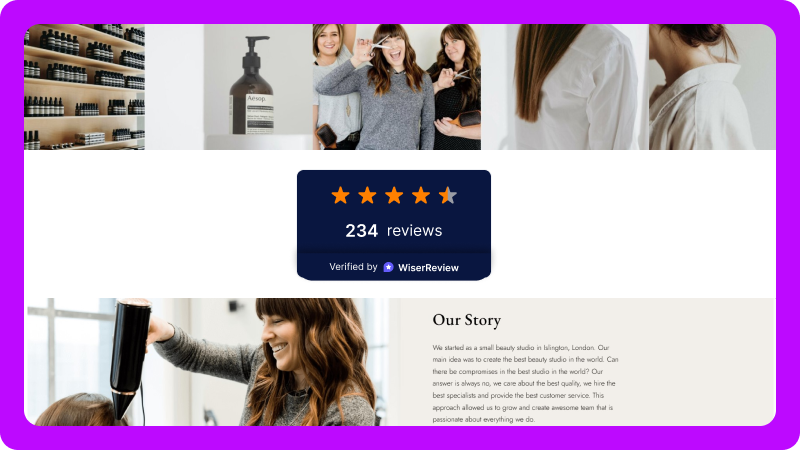 WiserReview helps you showcase real client experiences, complete with photos, videos, or written feedback, so trust is built before they ever step through your door.