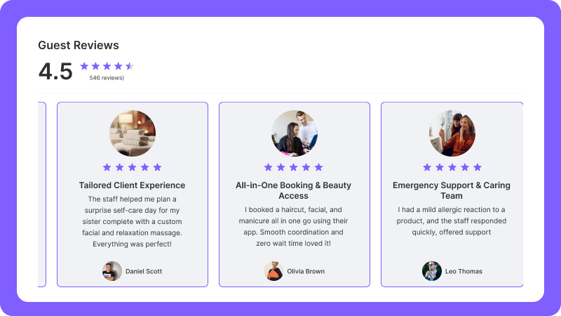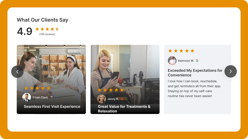Whether you're running a luxury med spa or a modern boutique clinic, your reviews will feel like a natural part of your experience, on desktop or mobile.
