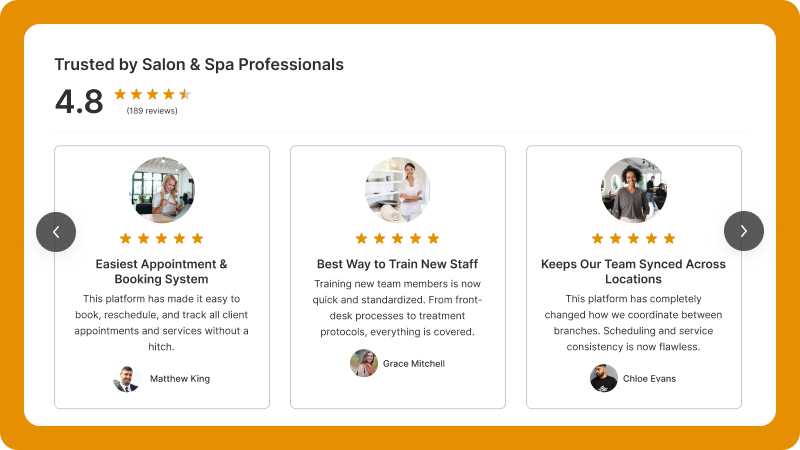 Seeing genuine testimonials right next to your treatment details helps remove hesitation and makes it easier for clients to say “yes” to scheduling.