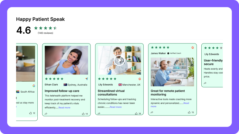 Yes. Use carousels, badges, or full review walls to place testimonials on your homepage, booking pages, or provider profiles.