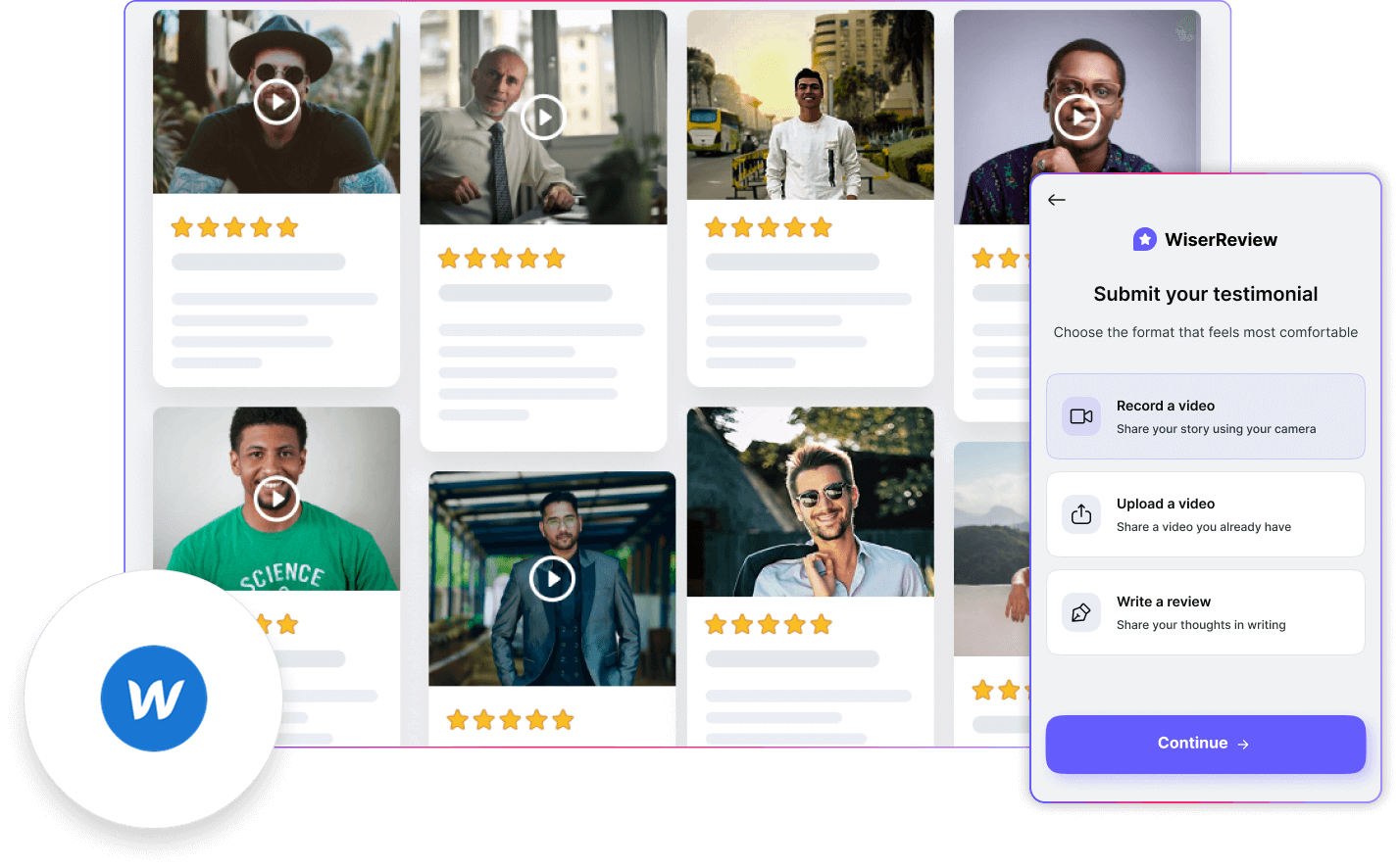 WiserReview collects, manages, and shows reviews automatically on Webflow.