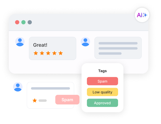 Filter reviews by star rating, tags, or words. Approve only what fits your product and tone. No spam, no fluff. Just high-quality feedback.
